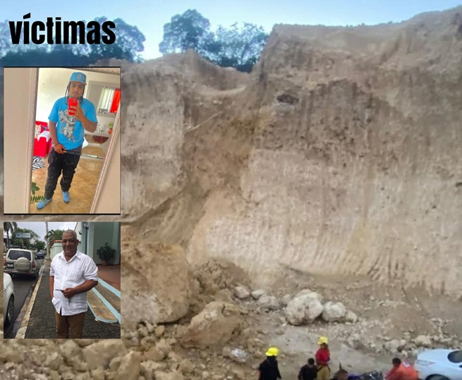 Dos personas perdieron la vida y otra resultó herida a consecuencias de un derrumbe ocurrido mientras laboraban en una mina de materiales del sector de María La O, en la comunidad de Cangrejos, Sosúa.