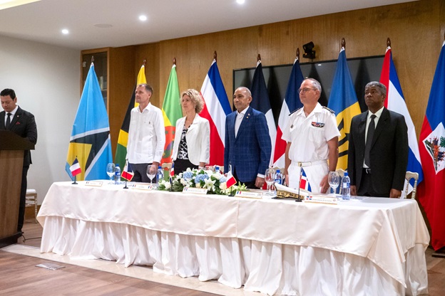 El acto de apertura estuvo encabezado por el vicealmirante José Manuel Cabrera Ulloa, presidente de la DNCD, la embajadora de Francia en el pais, Sonia Barbry y el contralmirante Jean Baptiste Soubrier, Comandante de las Fuerzas Armadas en las Antillas Francesas, junto a otras autoridades nacionales e internacionales.