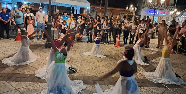 La Escuela de Danza Grandales, dirigida por Gertrudis Grandales, presentó varios números en los cuales, las niñas y jóvenes de la misma, demostraron sus destrezas en el ballet, recibiendo el respaldo entusiasta del público que se dio cita en la Plaza Independencia.